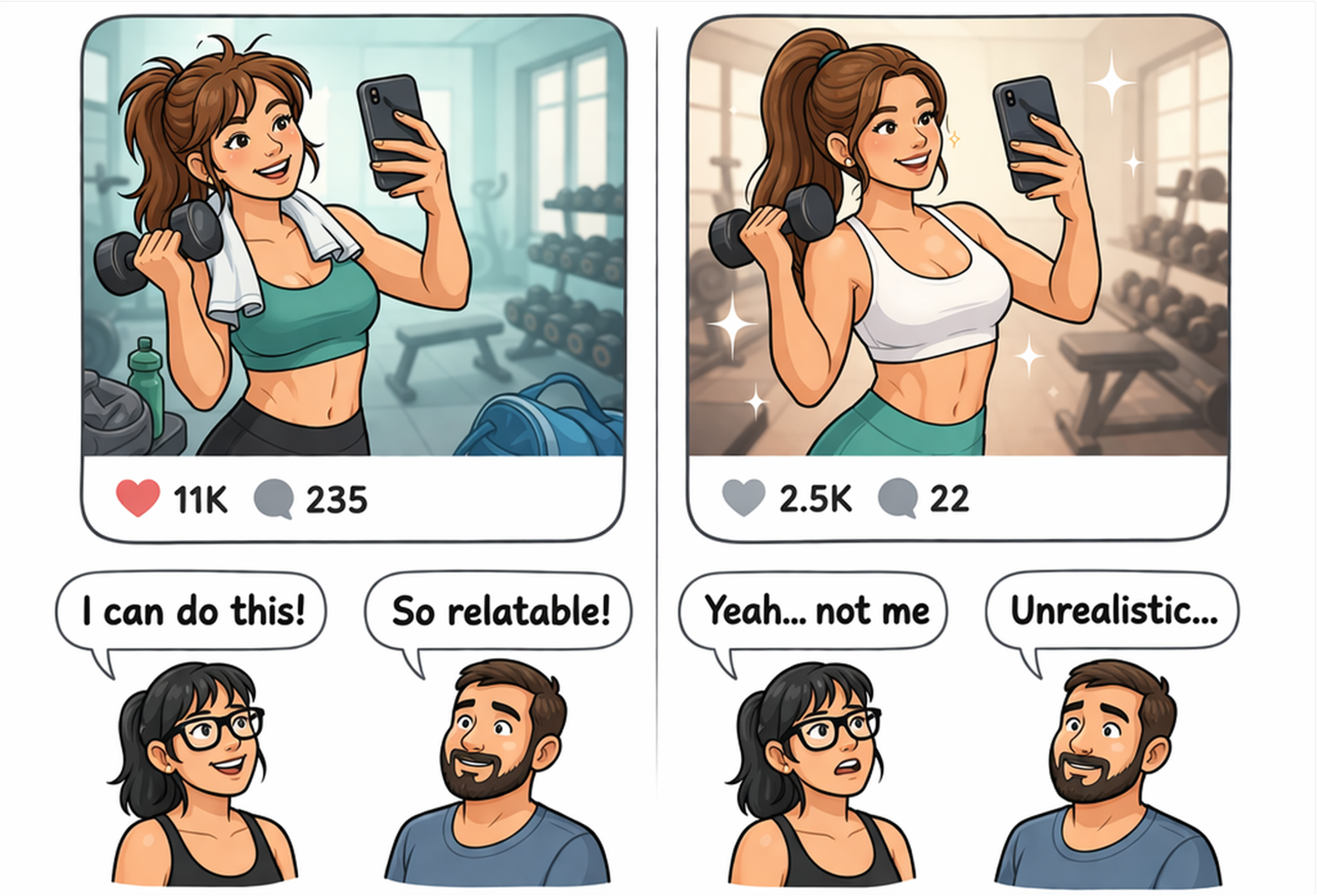 In the online fitness world, can good looks actually be a liability?